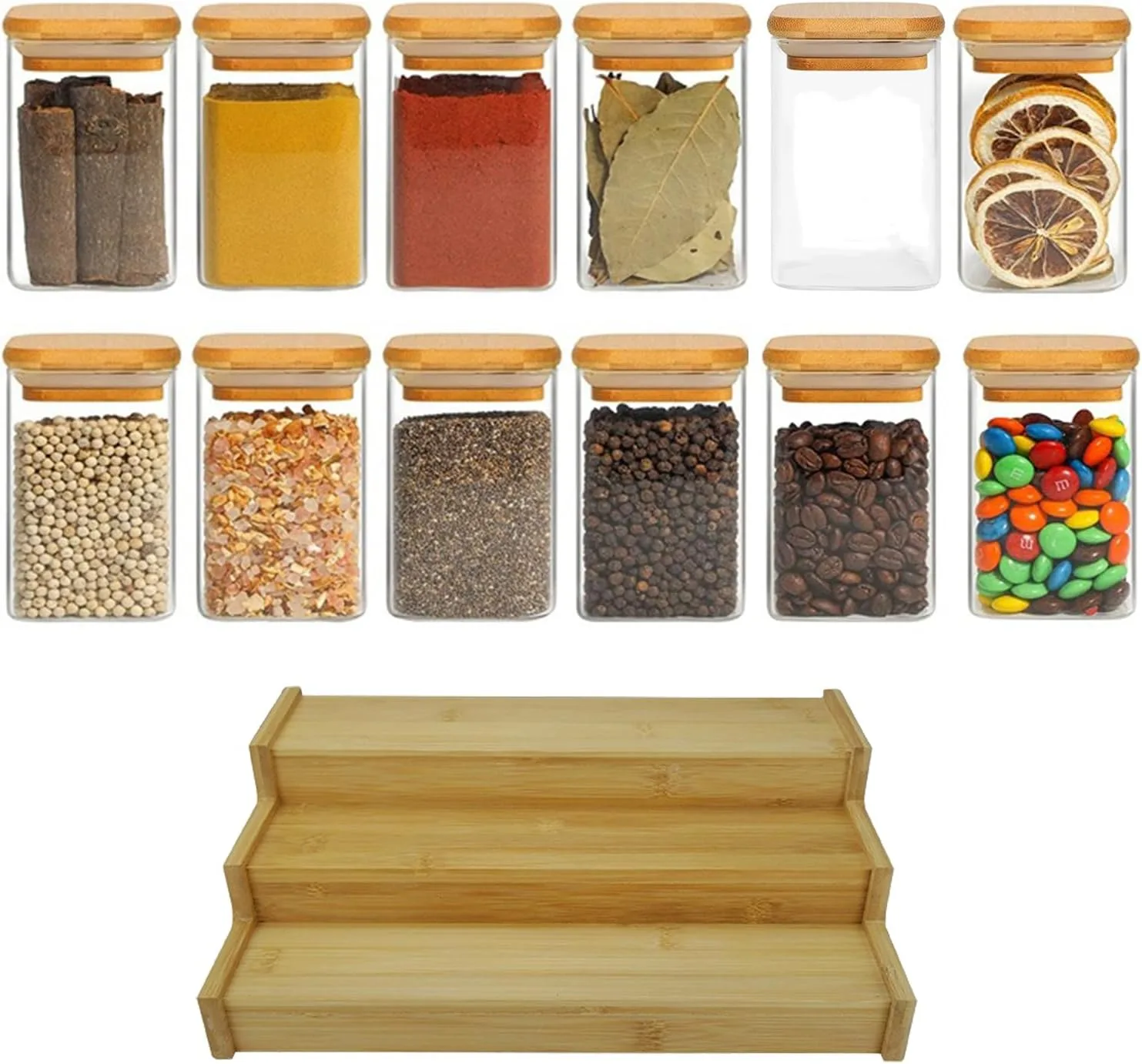 Vaso de Vidrio con Tapa de Bambú – 500ml