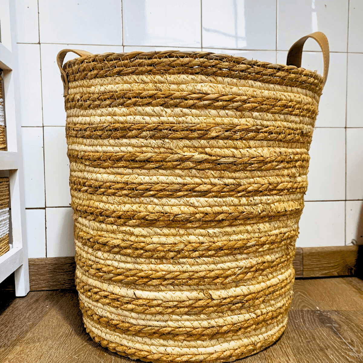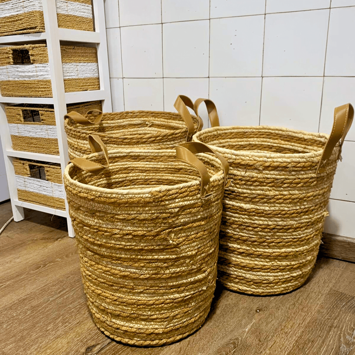 Cesta Natura Organizador De Yute Natural Con Asas De Cuero – Estilo Nórdico