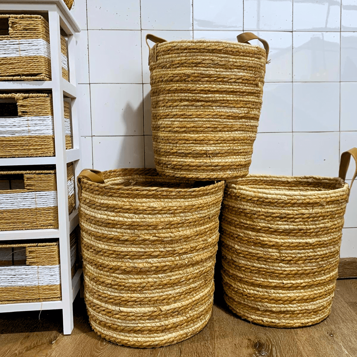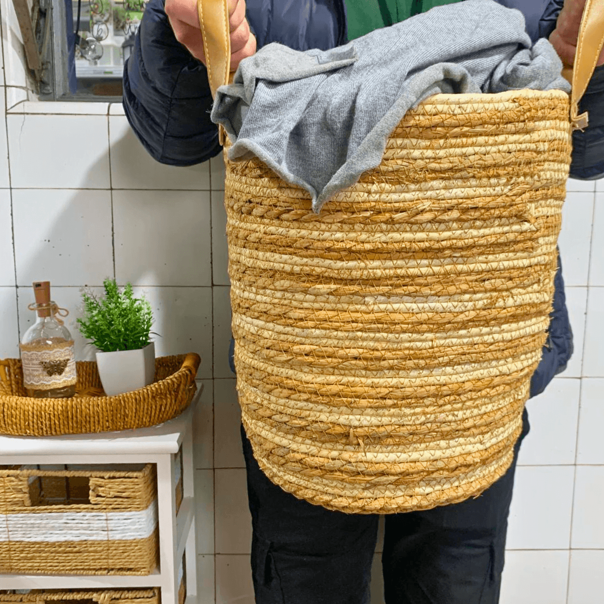 El yute o mimbre es una fibra natural que se obtiene de un arbusto de la familia de los sauces y se teje a mano para fabricar distintos objetos útiles como los cestos!
