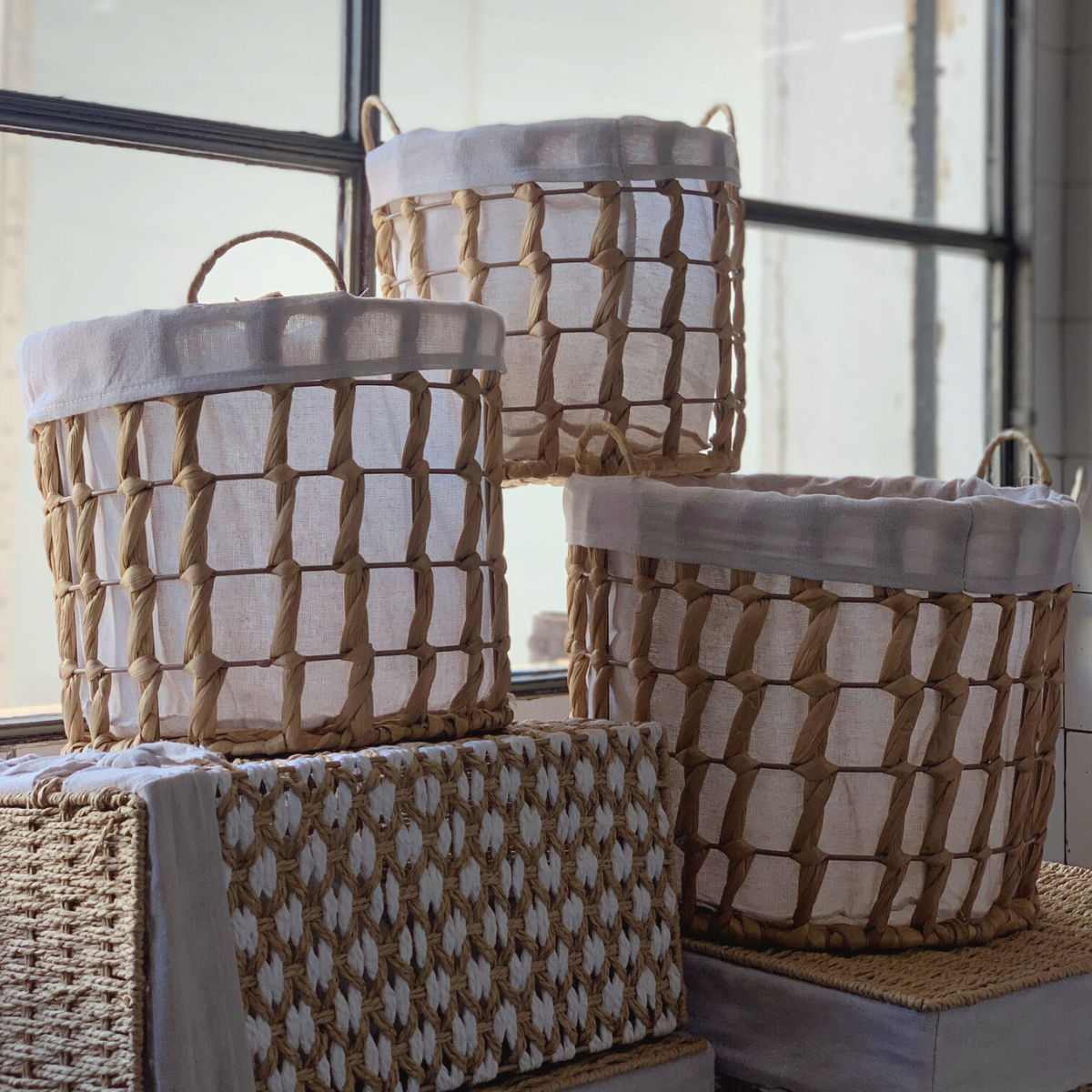 Tu cesto de yute es perfecto como complemento para cualquier ambiente. Además, está tejido a mano con fibras naturales y cuenta con un delicado forro blanco que realza su elegancia.